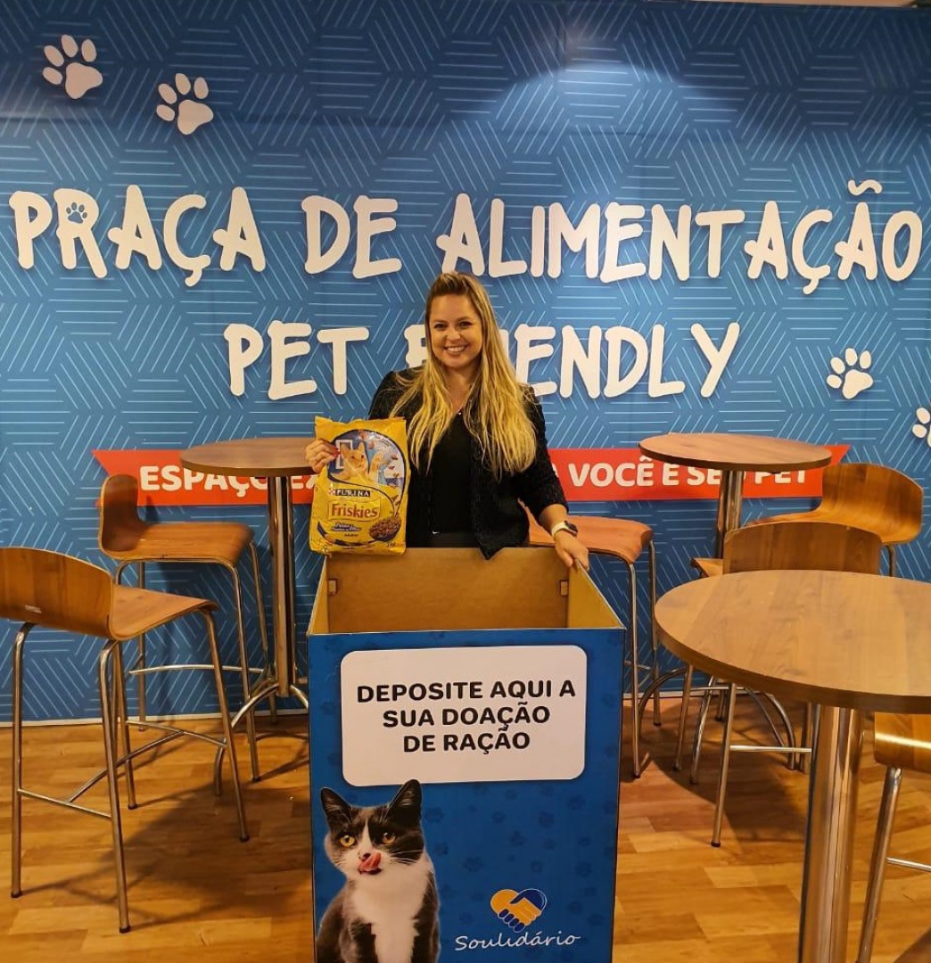 O Projeto #Vemcer, presidido por Tatiana Figueiredo (foto) fez uma parceria com o Shopping Grande Rio e colocou uma caixa para receber doações de ração para cães e gatos, medicamentos, vermífugos, antipulgas, brinquedos, caminhas, coleiras, sachês e produtos Pet.